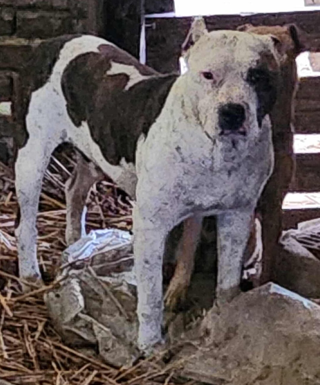 ▶️Egyéb: Staffordshire terrier jellegű, jelenleg 5 mások kutyával van egy disznó ólban